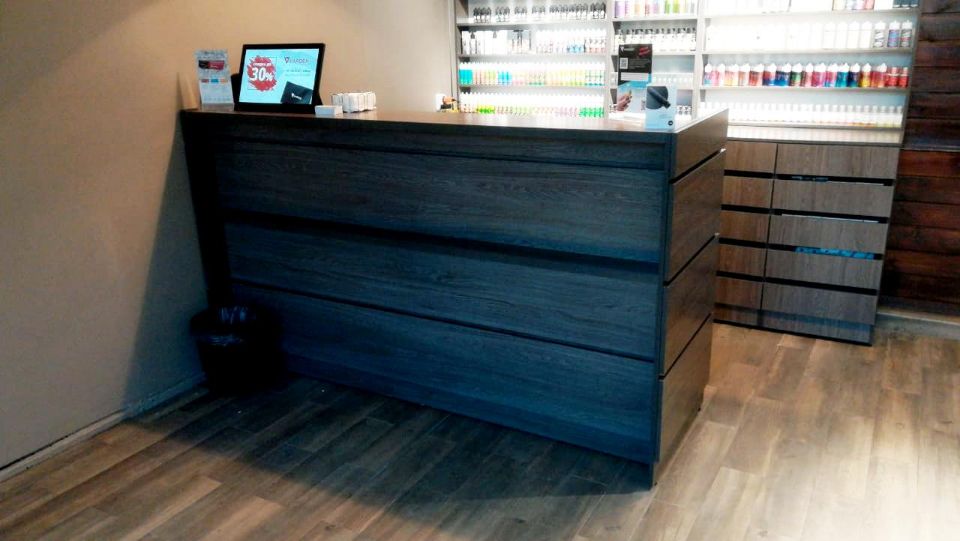Материалы: ЛДСП Флитвуд Серая Лава Egger; ЛДСП Белый шагрень Томск; Стекло 5/6 мм; Ленты диодные Белого холодного и красного цветов;