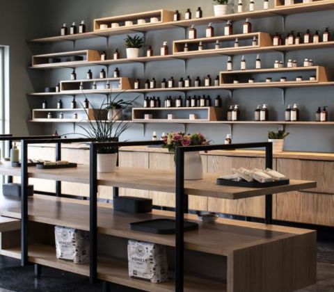 Материалы: ЛДСП Egger Дуб Бардолино натуральный, ОСБ покрытое бесцветным лаком Renner, массив сосны покрытый маслом VARATHANE, стекло 6мм Extra Clear; Подсветка диодная.