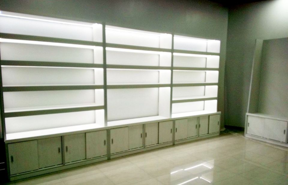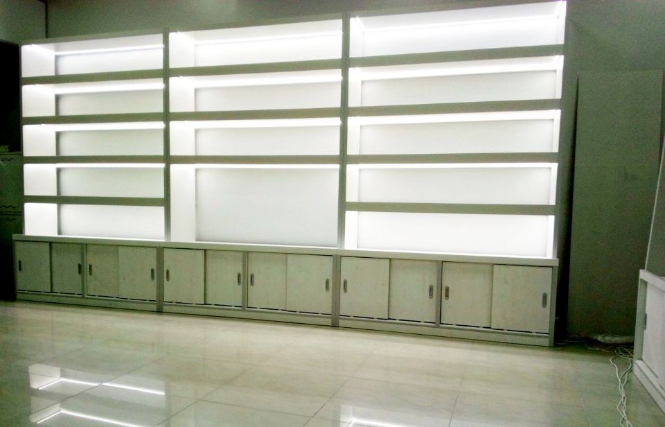 Материалы: ЛДСП Черный Томск 16мм; ЛДСП Белый Томск 16 мм; Стекло 5 мм; Стекло 6 мм; Фрезеровка под Акриловую вставку; Диодная лента RGB;