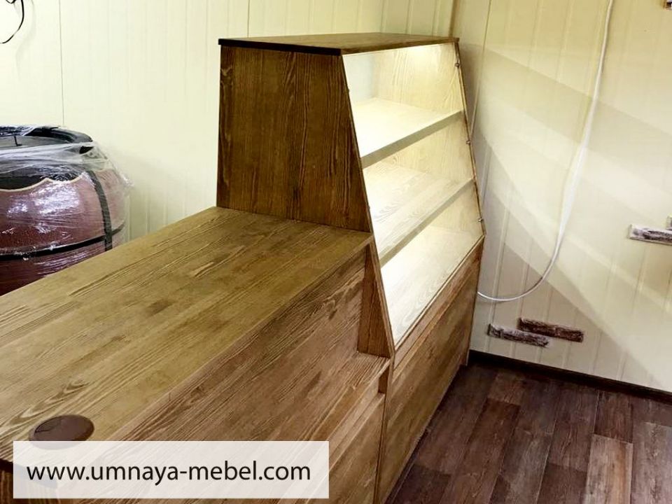 Материалы: ЛДСП под мебельный щит Томск; Массив мебельный щит; Стекло 6 мм; Диодная лента Теплый свет;