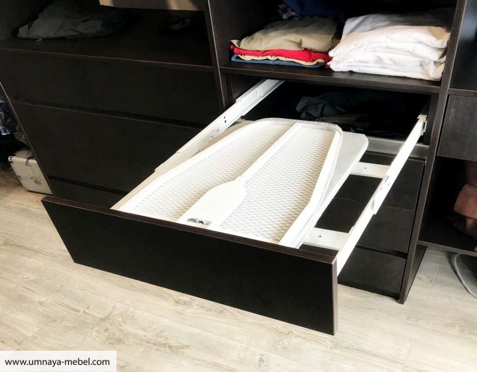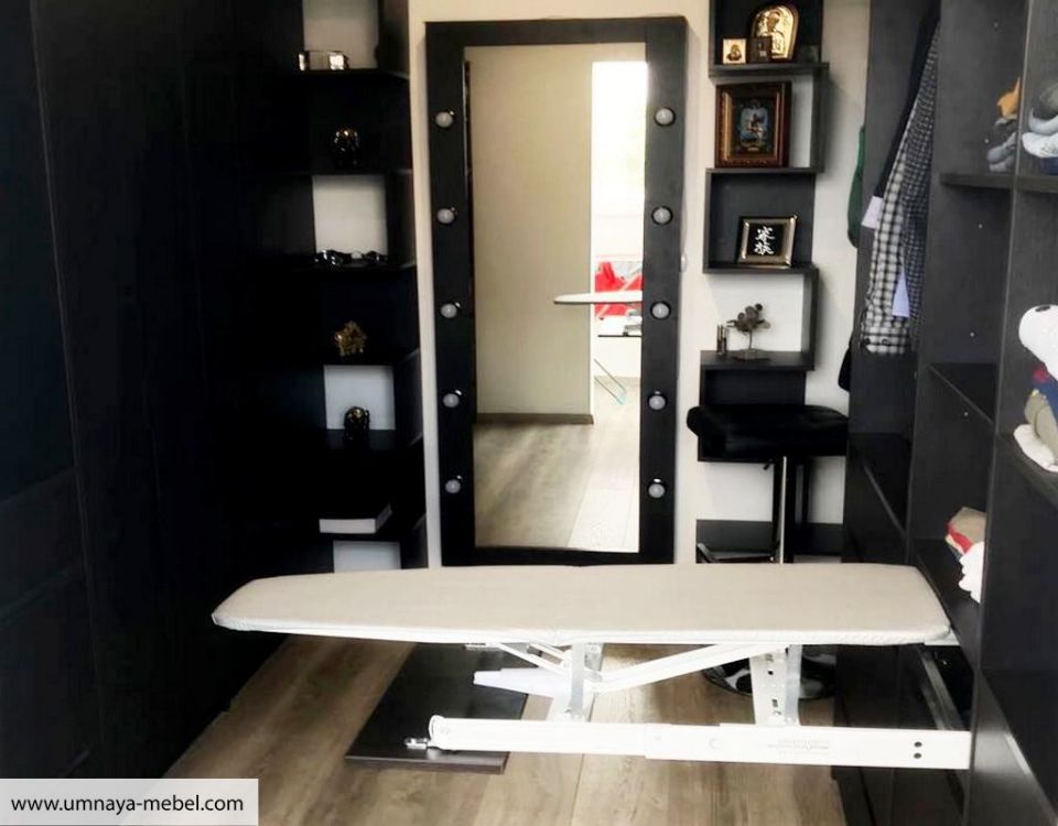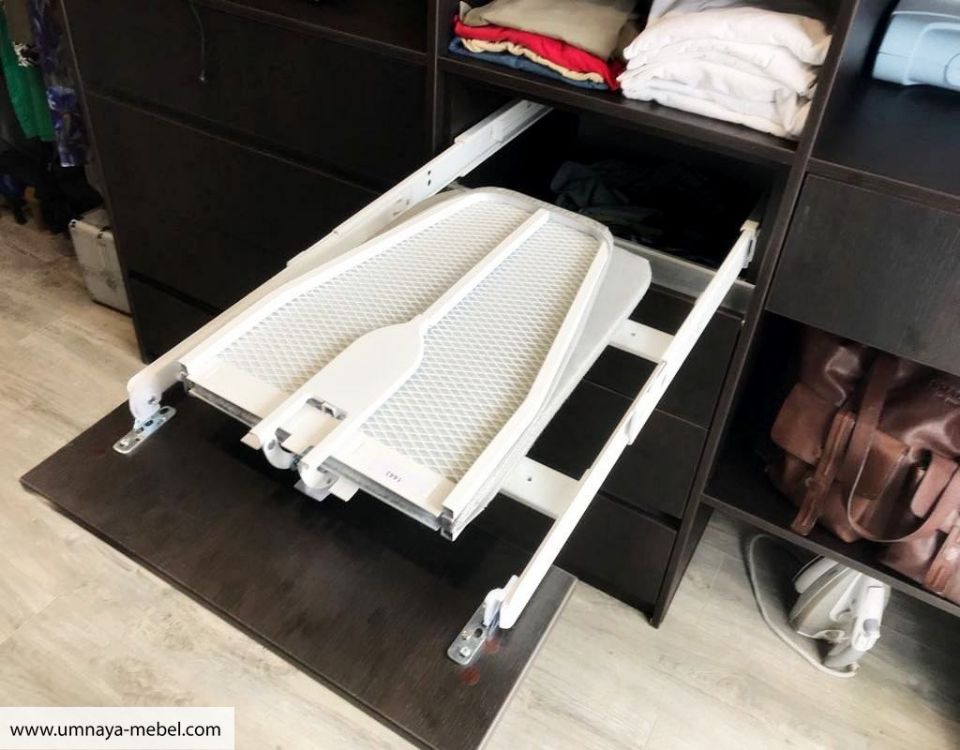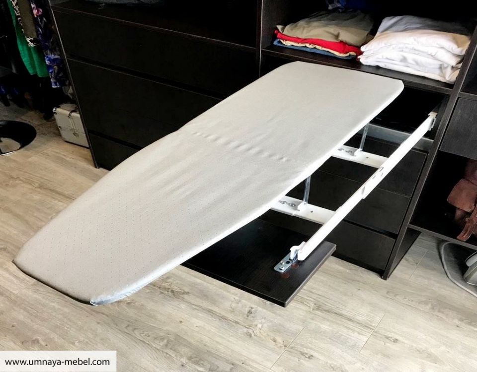 Фурнитура: Шариковые телескопические направляющие полного выдвижения, гладильная доска, зеркало с подсветкой.