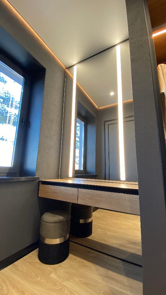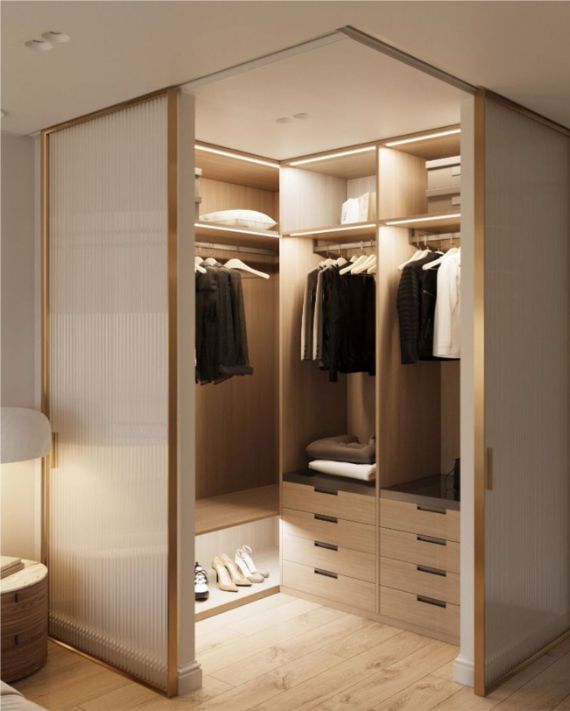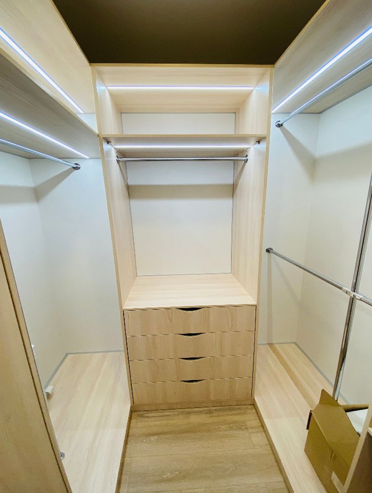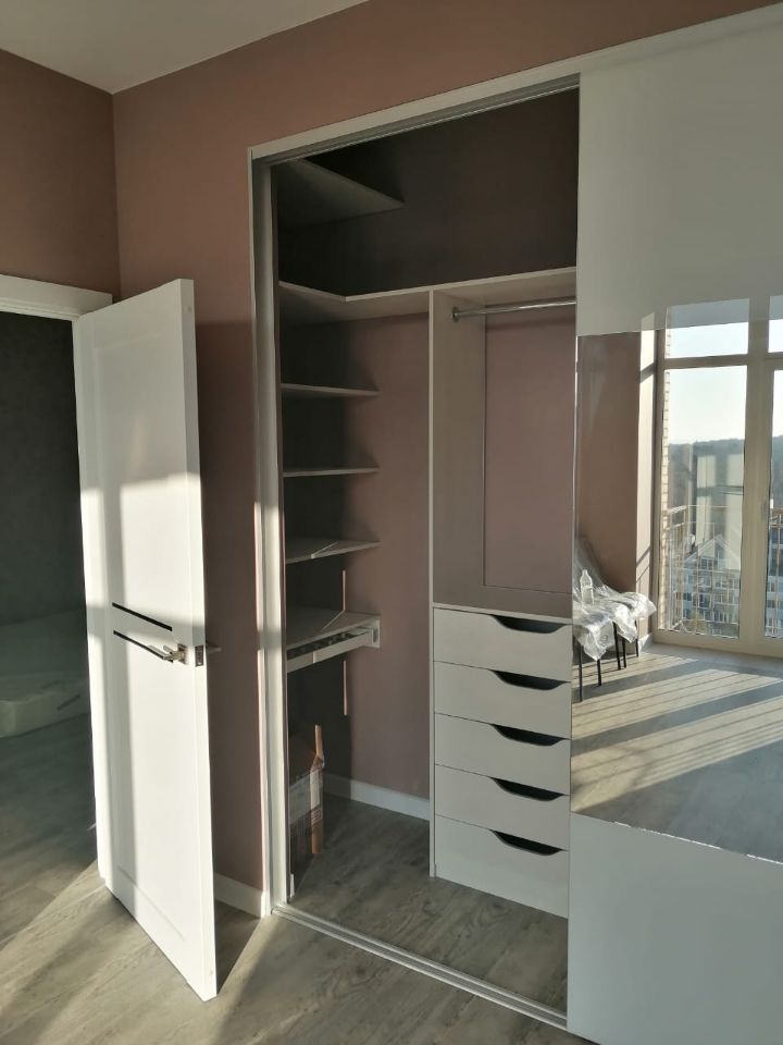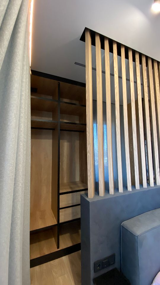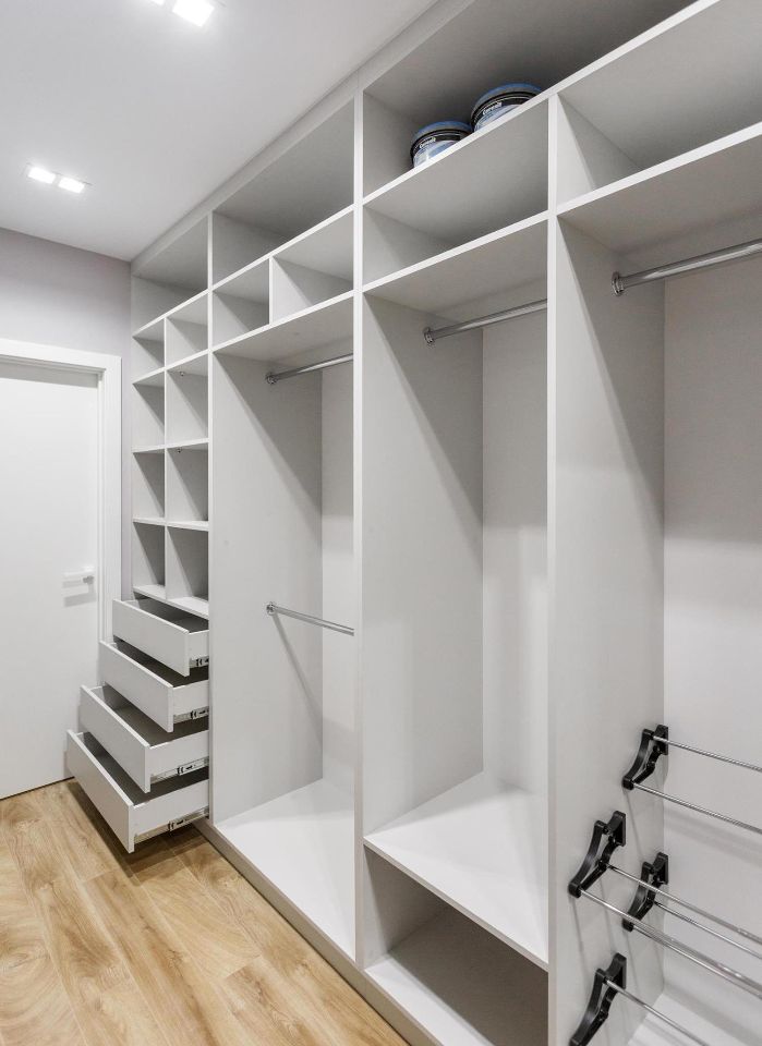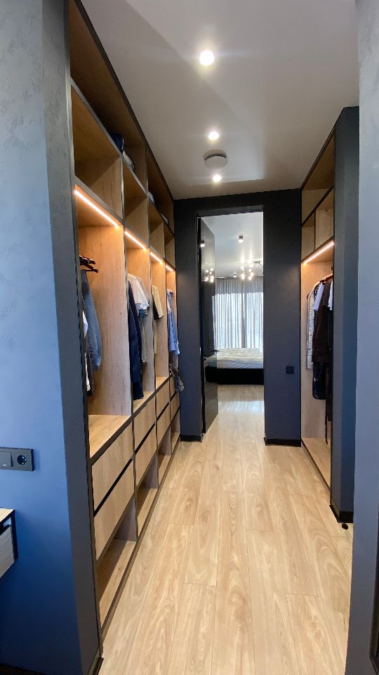 - Если места достаточно, то можно установить гардеробную: в Спальне, в Прихожей, в Детской, в Гостиной.