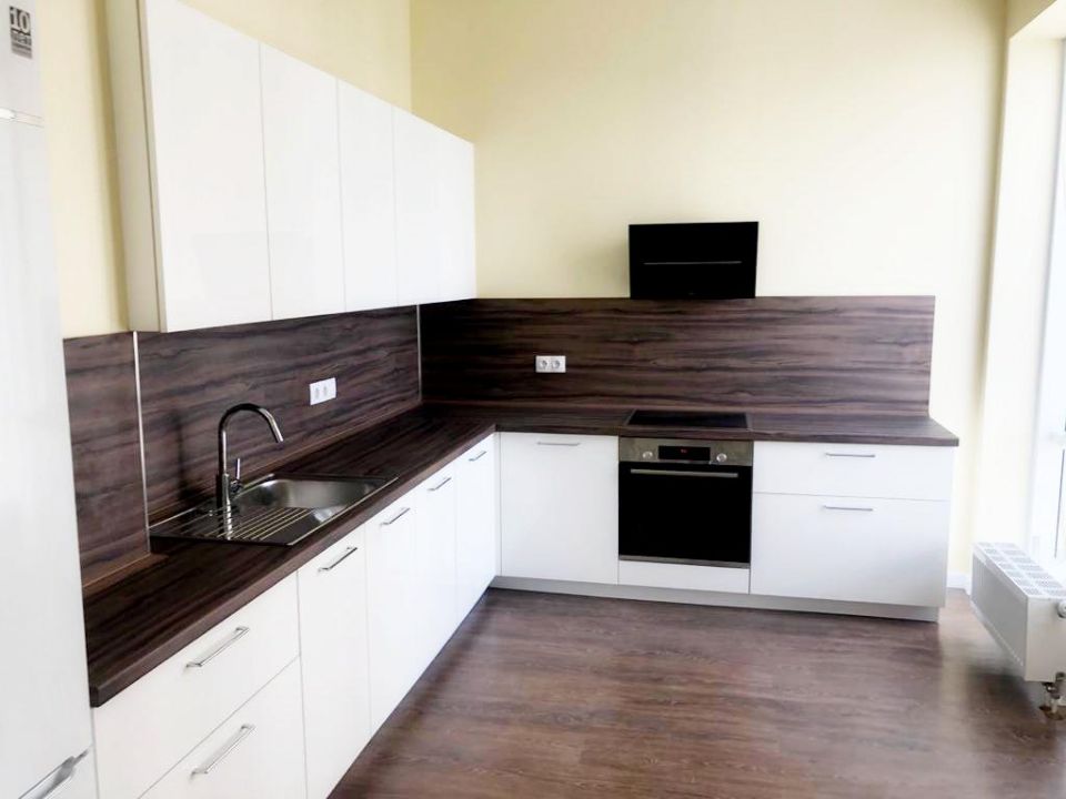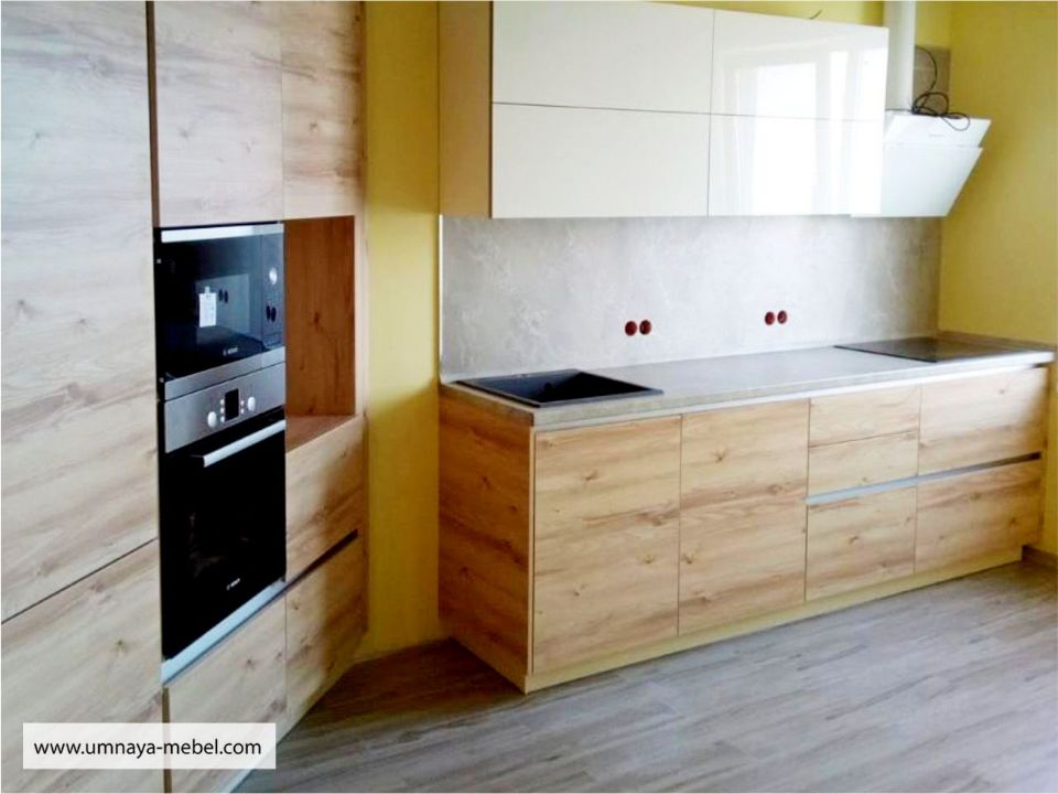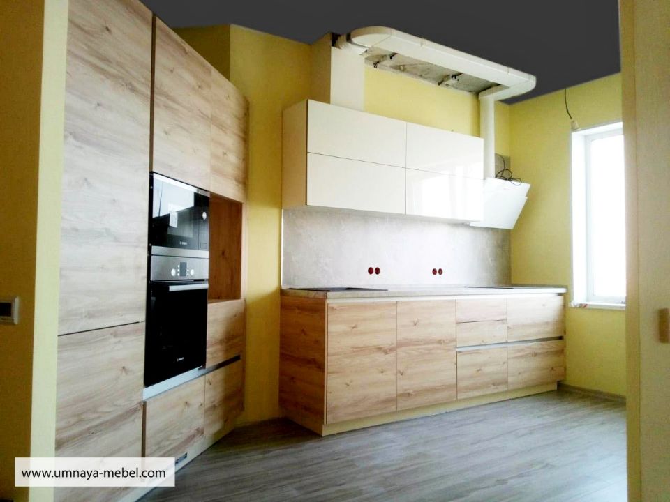 Материал ЛДСП: Egger: влагостойкий "Белый полированный"; Фасады: AGT "Белый матовый", AGT "Дуб натуральный 397". Фурнитура: Blum.