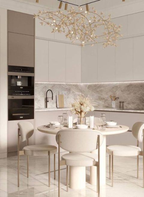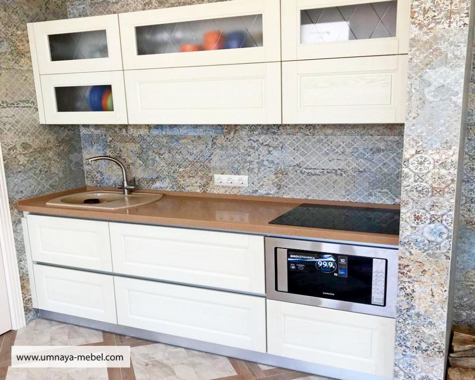 Светлая и уютная кухня со встроенной бытовой техникой: