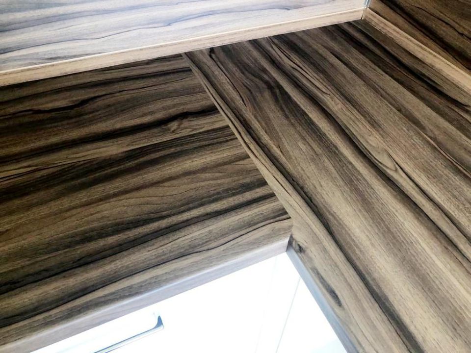 Материал ЛДСП: Egger: корпуса –белый влагостойкий; Фасады низ - Бардолино, верх - белый глянец в 3Д кромке.