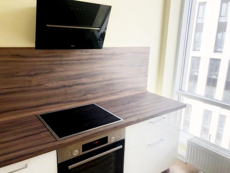 Столешница: Кварцевый агломерат ZXS09114, Стеновая панель – плитка.